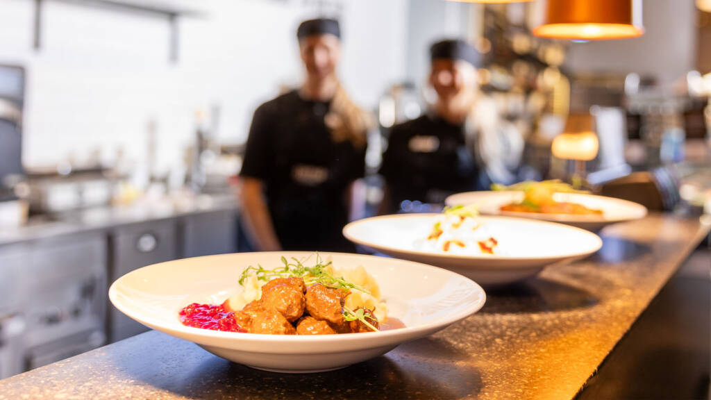 Utöver dagens rätter finns Ediths köttbullar, ett återkommande val som alltid finns för den som vill ha något välbekant. På menyn finns även sallader och en barnmeny, så att hela sällskapet kan äta på sina villkor.